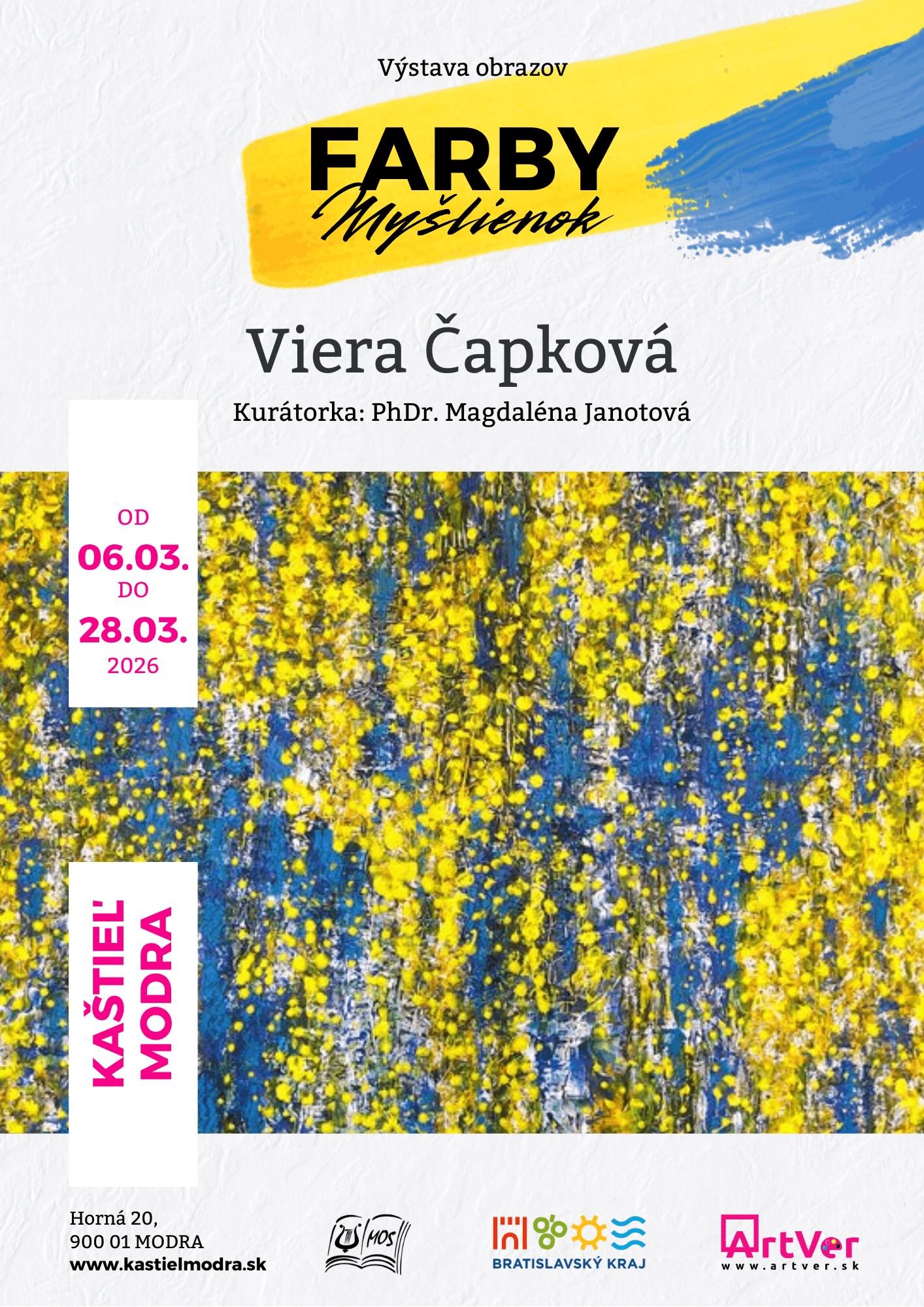 Existujú myšlienky, ktoré nemožno vysloviť slovami. Existujú pocity, ktoré sa dajú zachytiť iba farbou. Výstava Farby myšlienok predstavuje výber abstraktných diel významnej slovenskej výtvarníčky Viery Čapkovej, v ktorých sa farba stáva jazykom a svetlo nositeľom vnútorného príbehu.